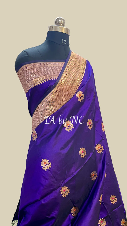 Grape Banarasi Pure Katan Silk Kadwa Meenakari Saree