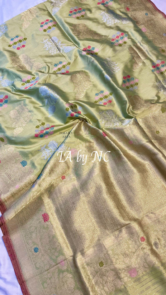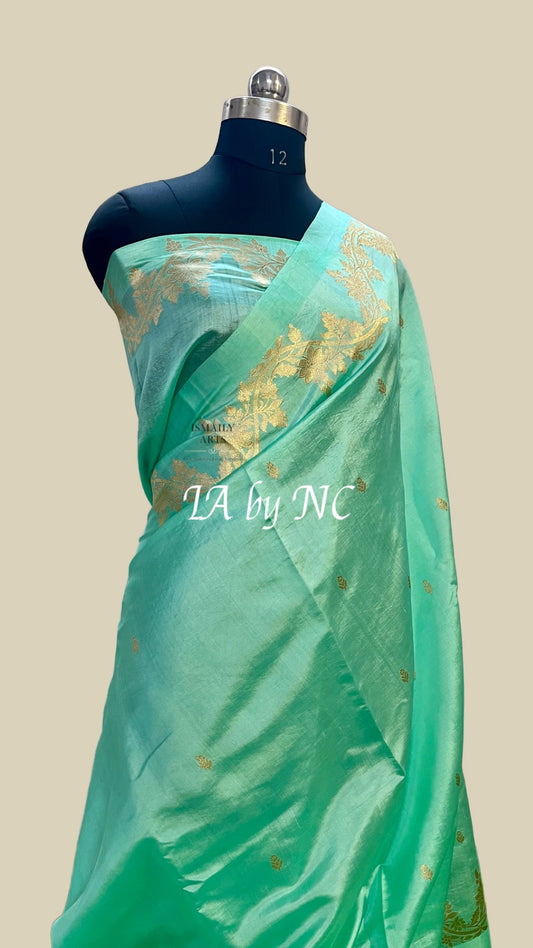 Pista Banarasi Pure Katan Silk Kadwa Pattu Saree
