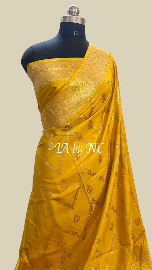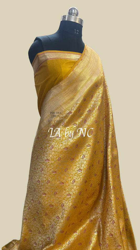 Goldenrod Banarasi Pure Katan Silk Mashru Kadwa Saree
