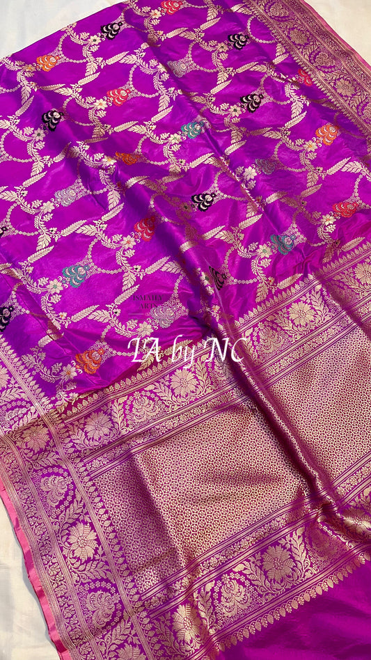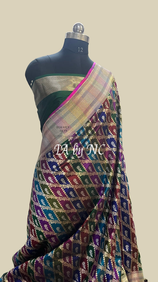 Mulberry Banarasi Pure Katan Silk Tilfi Meenakari Rangkat Saree