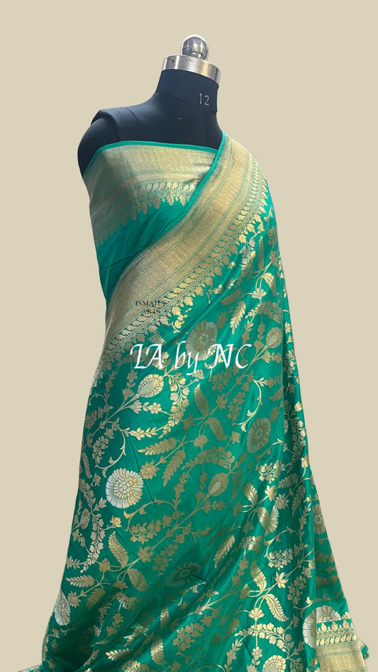 Teal Banarasi Pure Katan Silk Pattu Saree