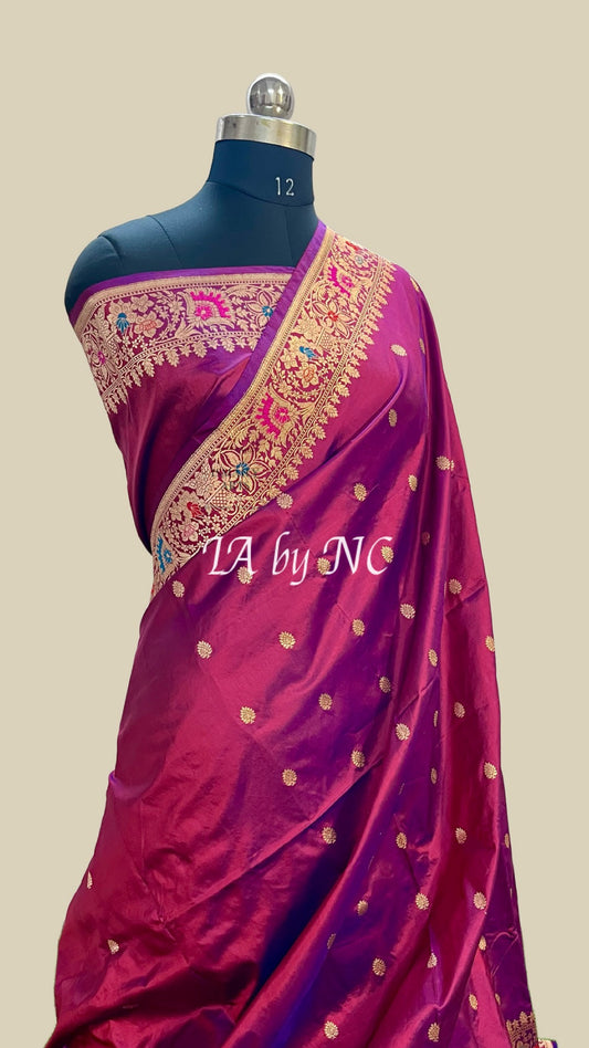 Berry Banarasi Pure Katan Silk Kadwa Meenakari Saree