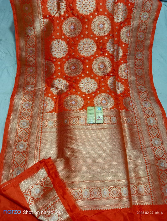 Flamingo Banarasi Pure Katan Silk Brocade Saree