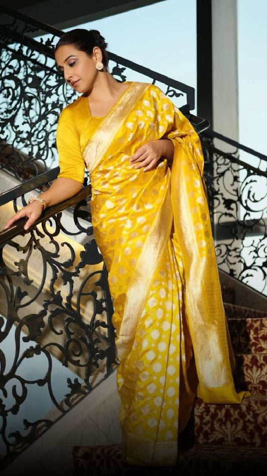 Vidya Balan’s Yellow Banarasi Pure Katan Silk Saree