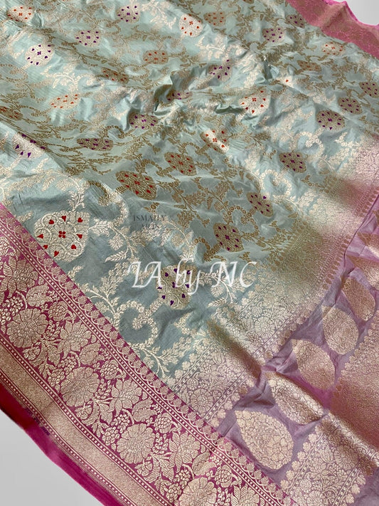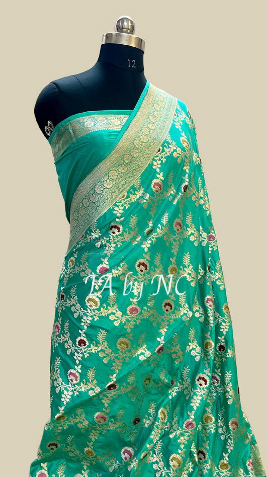 Seafoam Banarasi Pure Katan Silk Meenakari Pattu Saree
