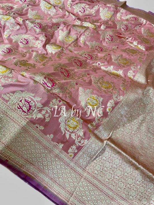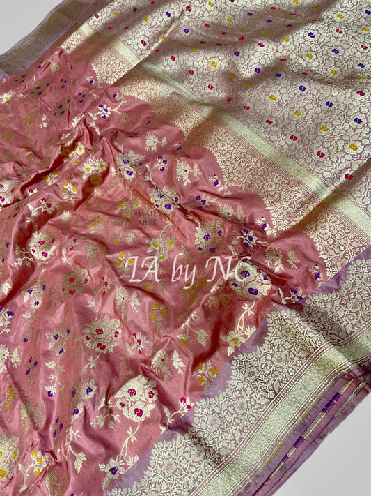 Salmon Banarasi Pure Katan Silk Meenakari Pattu Saree