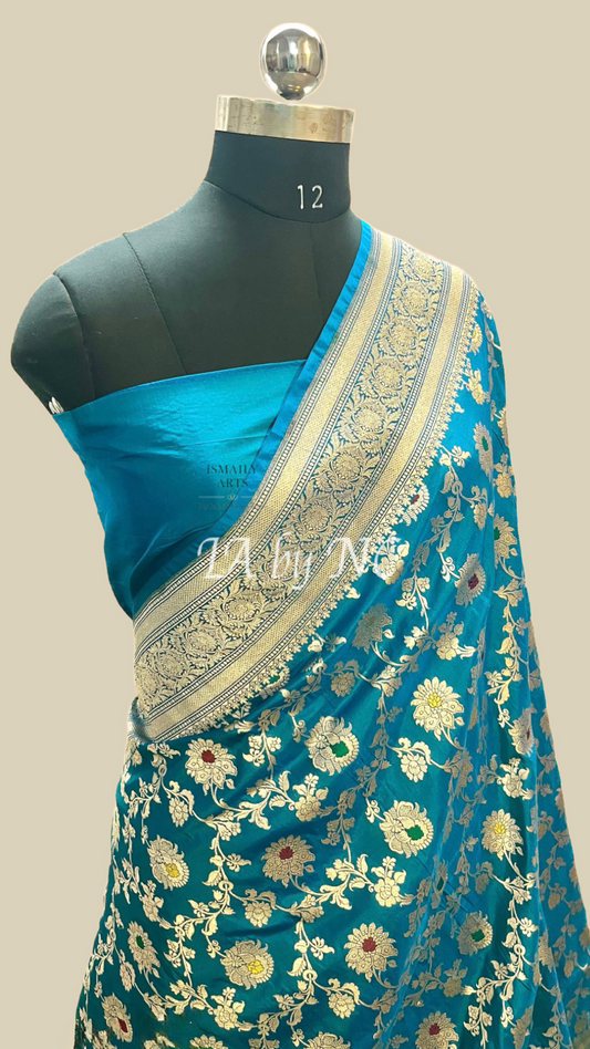 Saphhire Banarasi Pure Katan Silk Meenakari Pattu Saree