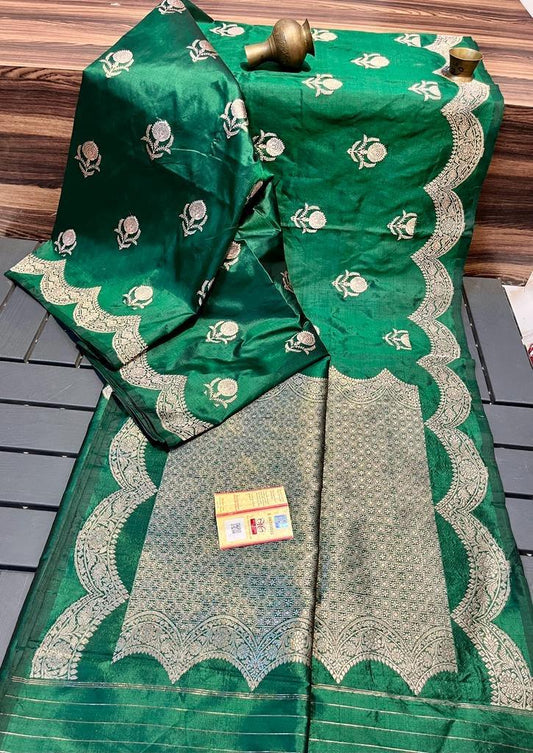 Avocado Banarasi Pure Katan Silk Raw Mango Saree