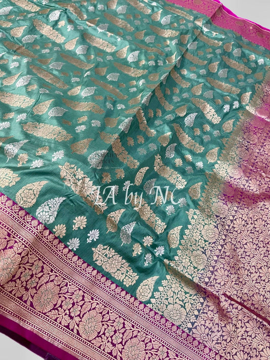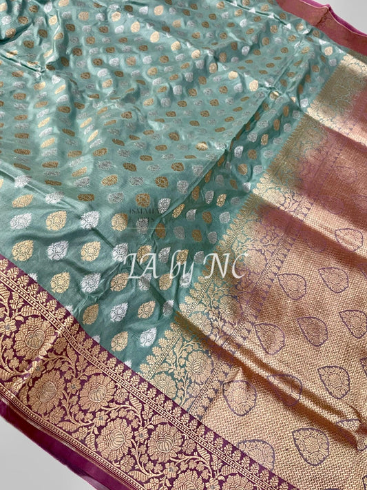 Mint Banarasi Pure Katan Silk Kadwa Saree