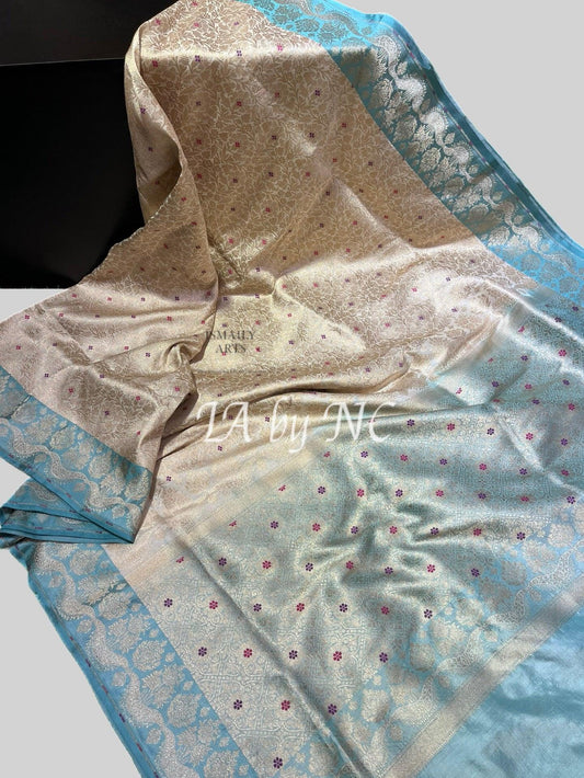 Caribbean Banarasi Pure Katan Silk Meenakari Pattu Saree