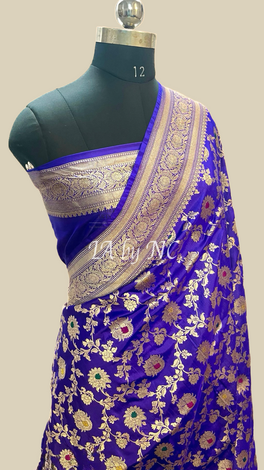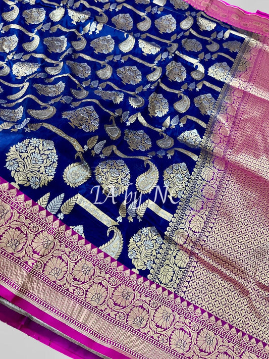 Navy Banarasi Pure Katan Silk Meenakari Pattu Saree