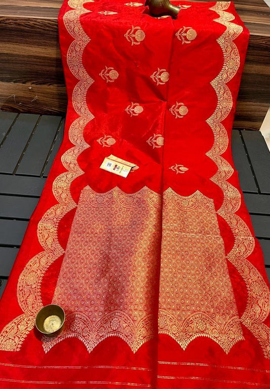 Carmine Banarasi Pure Katan Silk Tilfi Meenakari Rangkat Saree