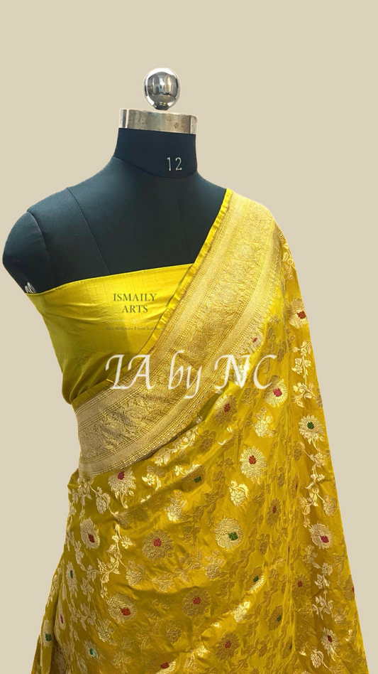 French Banarasi Pure Katan Silk Raw Mango Saree