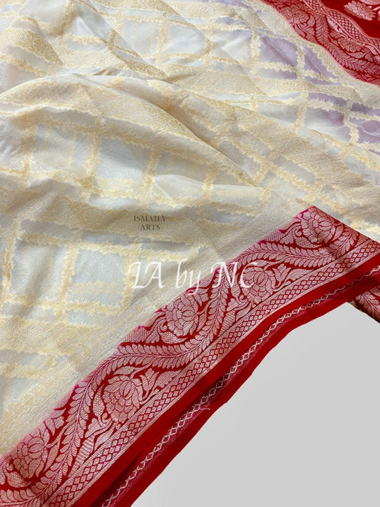 Offwhite Banarasi Pure Chiffon Georgette Saree
