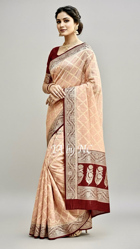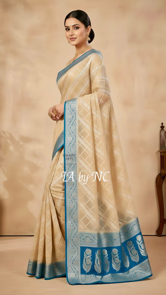 Eggnog Banarasi Pure Chiffon Georgette Saree