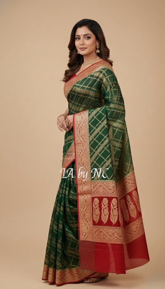 Avocado Banarasi Pure Katan Silk Raw Mango Saree