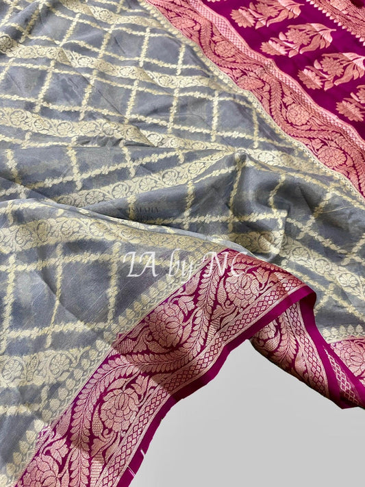 Pewter Banarasi Pure Chiffon Georgette Saree