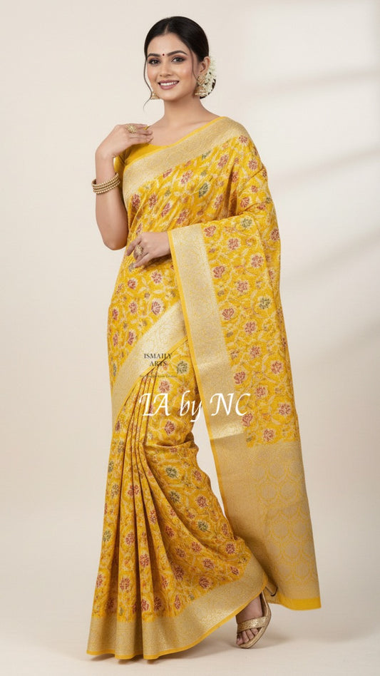 French Banarasi Pure Katan Silk Raw Mango Saree