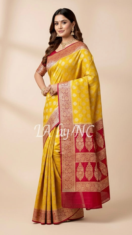 Bumblebee Banarasi Pure Katan Silk Raw Mango Saree