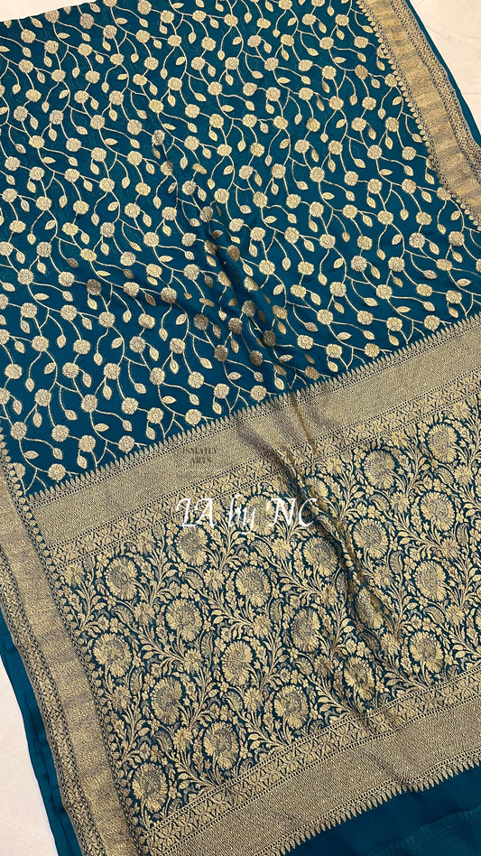 Turquoise Banarasi Pure Khaddi Georgette Saree
