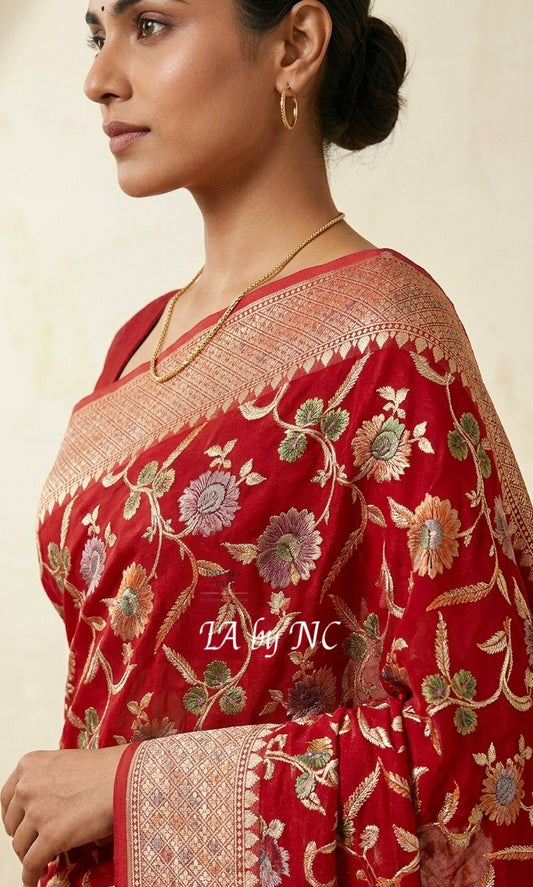 Scarlet Banarasi Pure Khaddi Georgette Saree