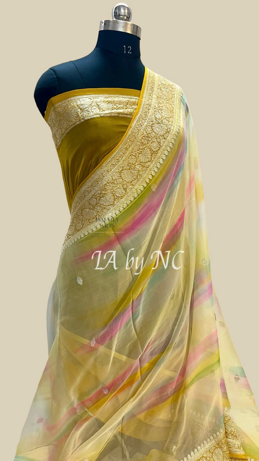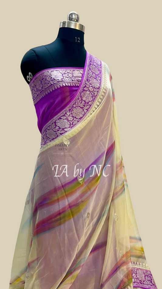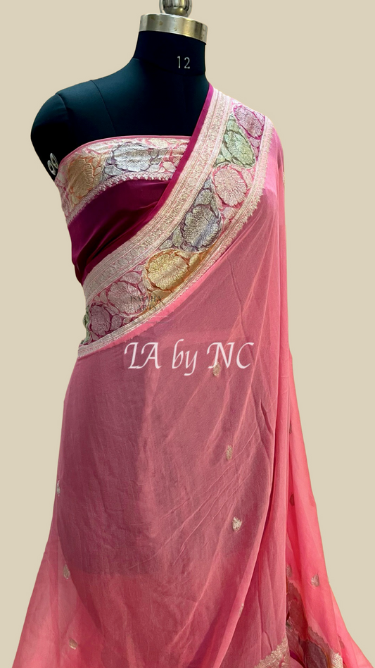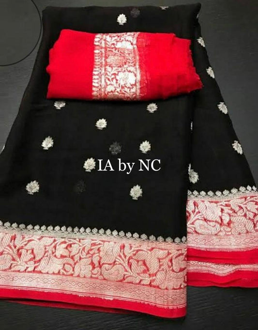 French Banarasi Pure Khaddi Georgette Kadwa Saree