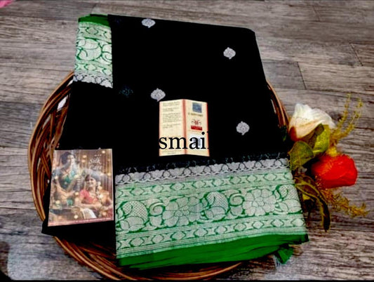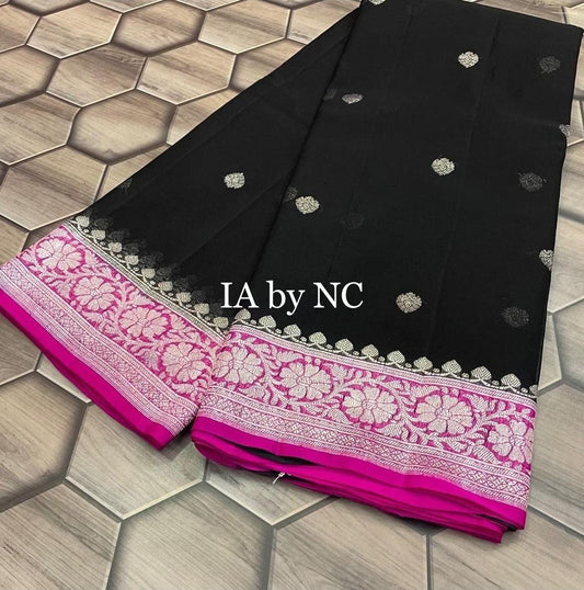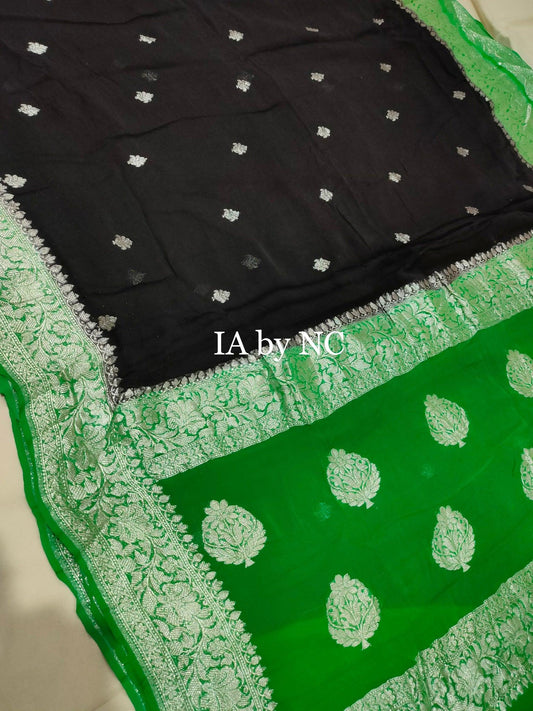 Black Banarasi Pure Khaddi Georgette Kadwa Saree