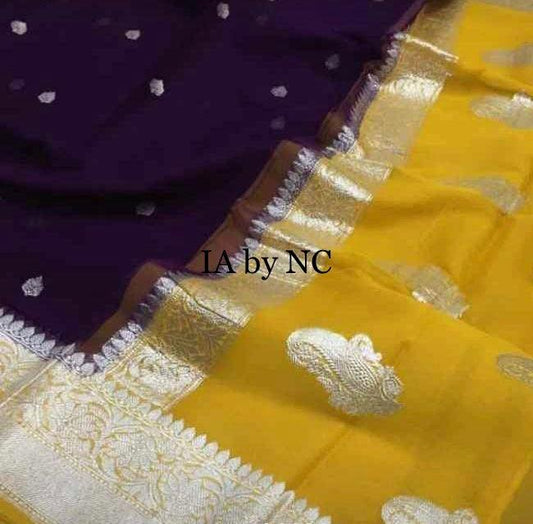 Grape Banarasi Pure Khaddi Georgette Kadwa Saree