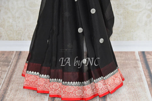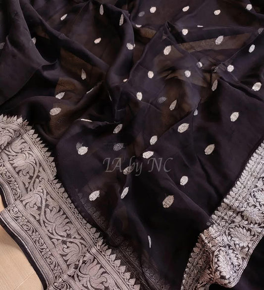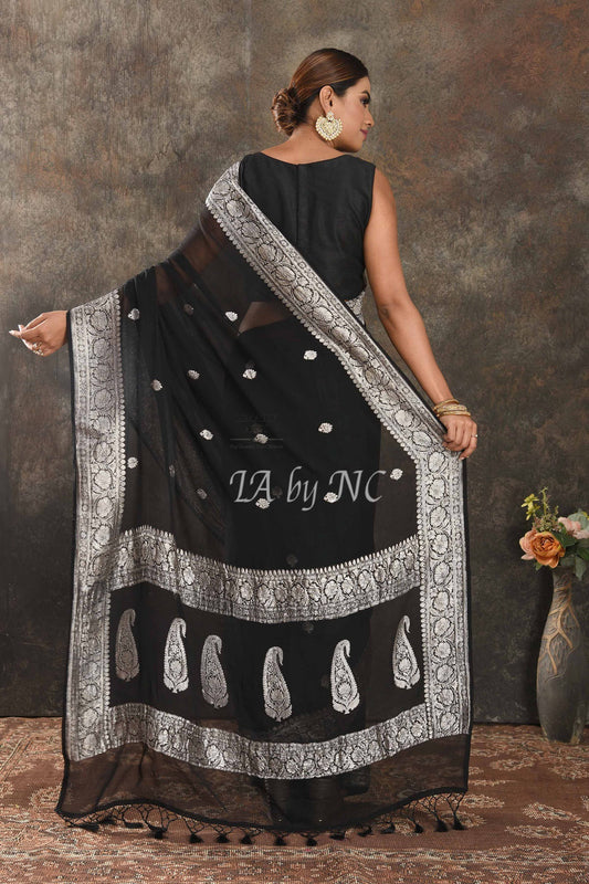 Black Banarasi Pure Khaddi Georgette Kadwa Saree