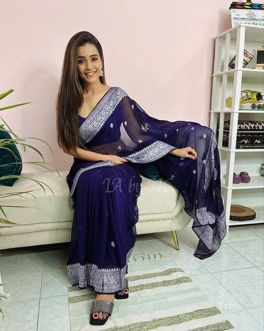 Denim Banarasi Pure Khaddi Georgette Kadwa Saree