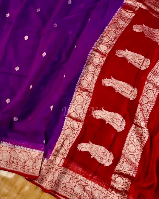 Ruby Banarasi Pure Khaddi Georgette Kadwa Saree