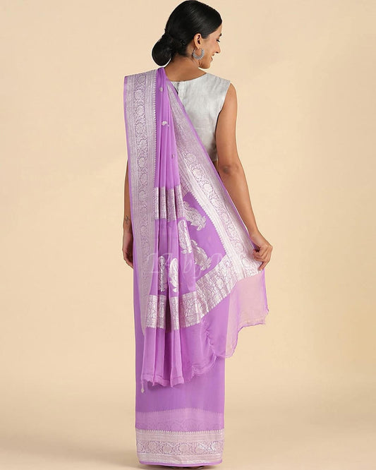 Orchid Banarasi Pure Khaddi Georgette Kadwa Saree