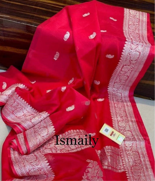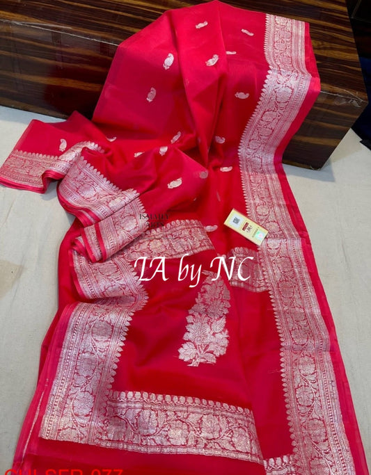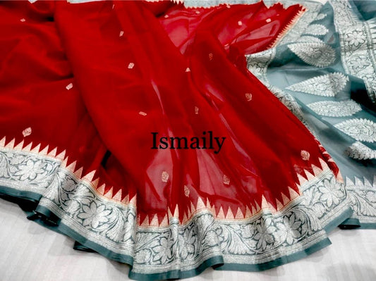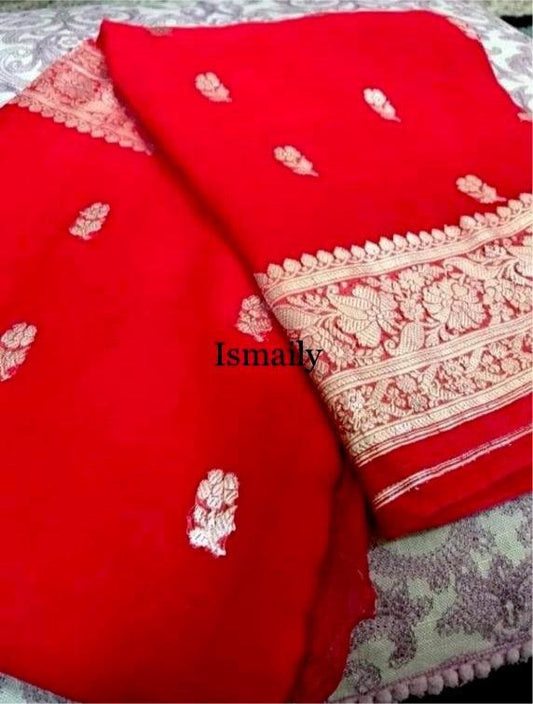Scarlet Banarasi Pure Khaddi Georgette Kadwa Saree