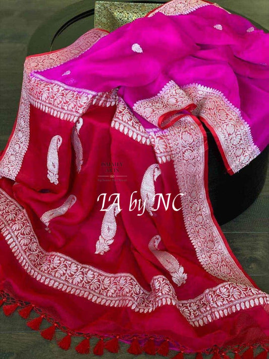 Raspberry Banarasi Pure Khaddi Georgette Kadwa Saree