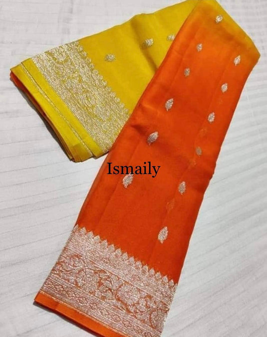 French Banarasi Pure Katan Silk Raw Mango Saree