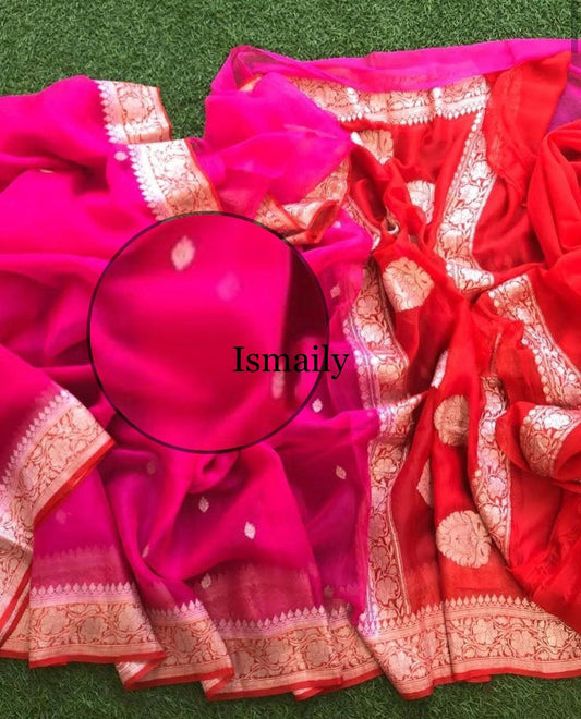 Ruby Banarasi Pure Khaddi Georgette Kadwa Saree