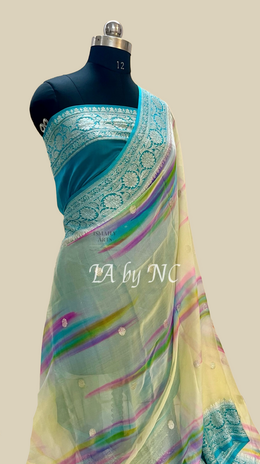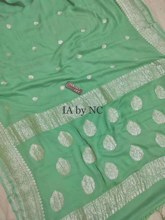 Mint Banarasi Pure Khaddi Georgette Kadwa Saree