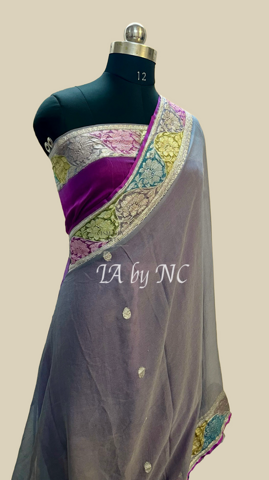 Grape Banarasi Pure Khaddi Georgette Kadwa Saree
