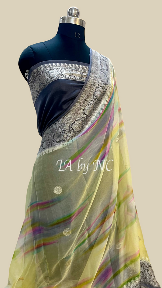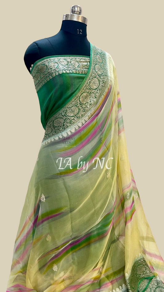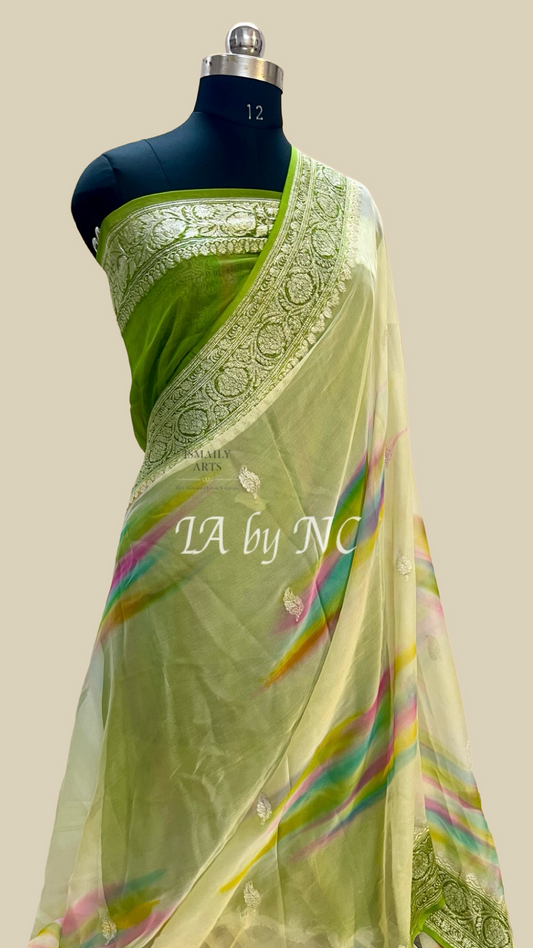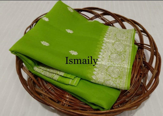 Mehendi Banarasi Pure Khaddi Georgette Kadwa Saree