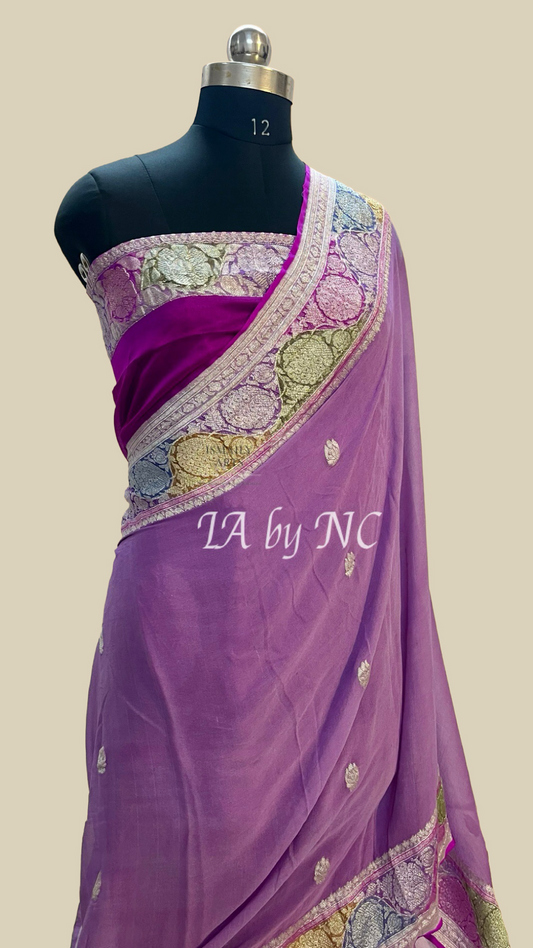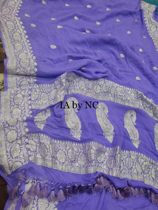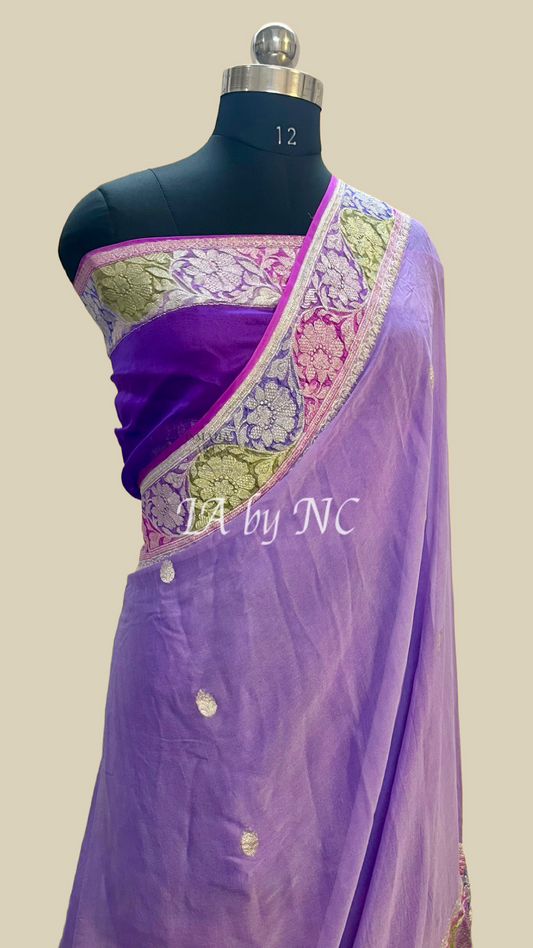 Purple Banarasi Pure Khaddi Georgette Kadwa Saree