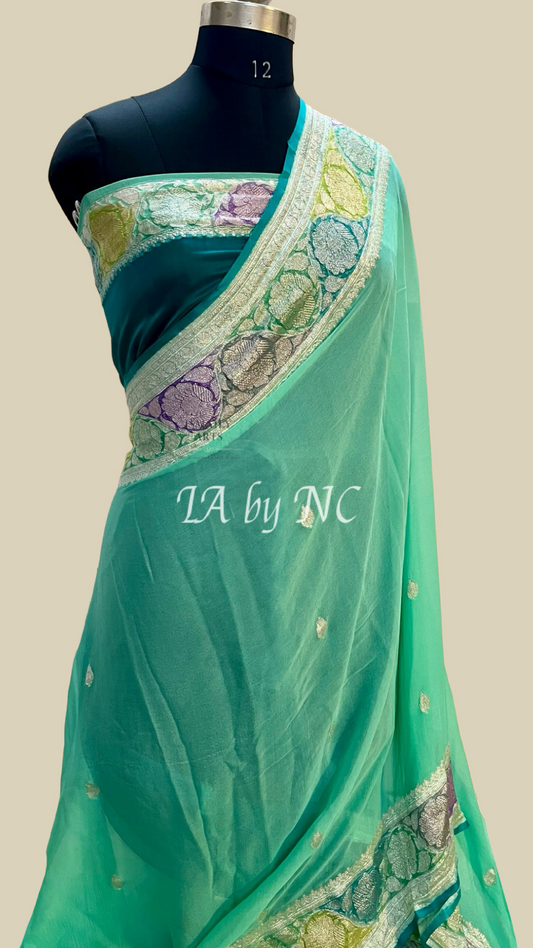 Jade Banarasi Pure Khaddi Georgette Kadwa Saree