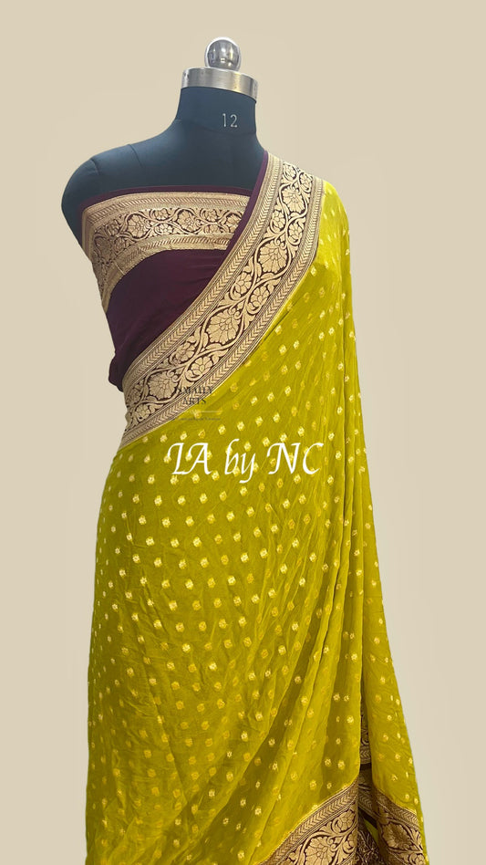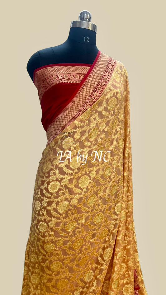 Ochre Banarasi Pure Khaddi Georgette Saree