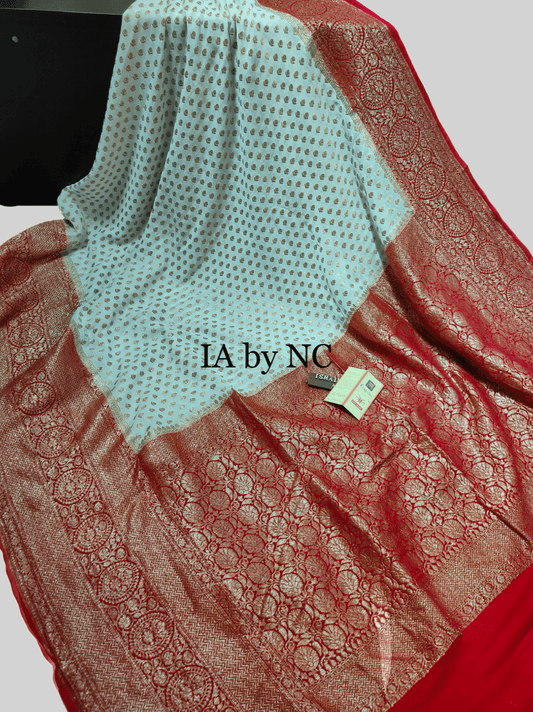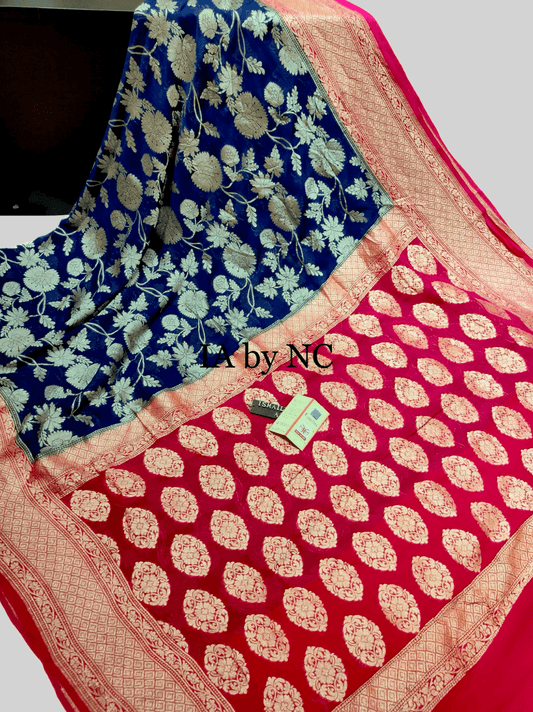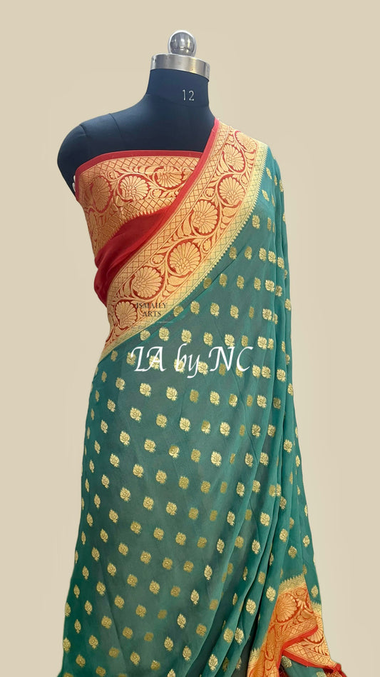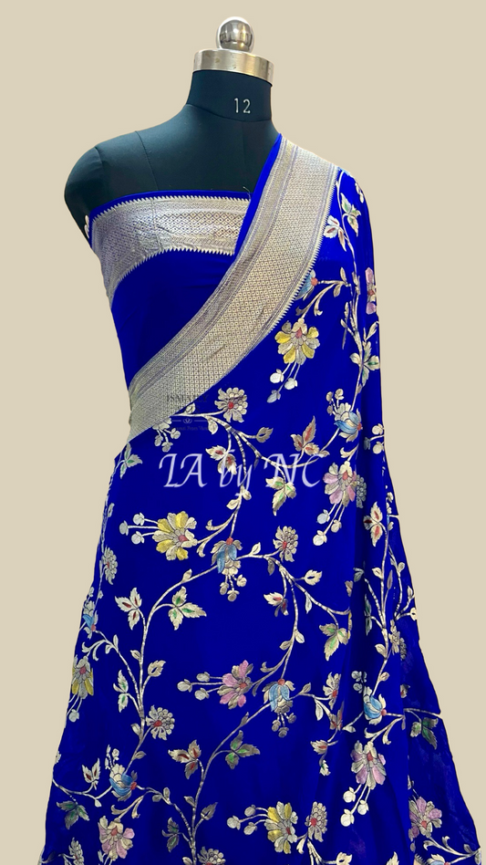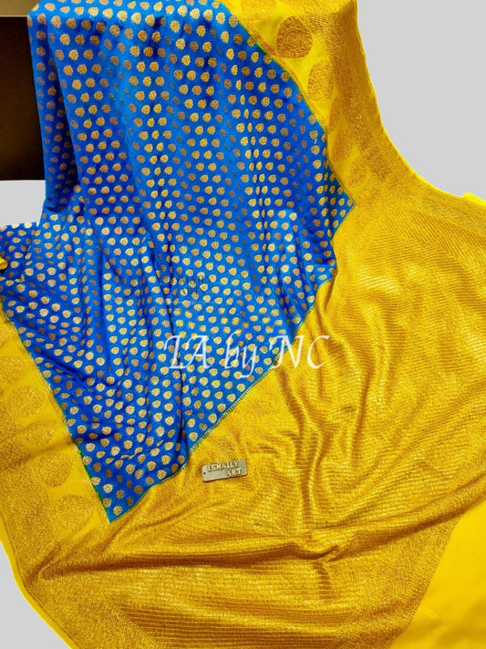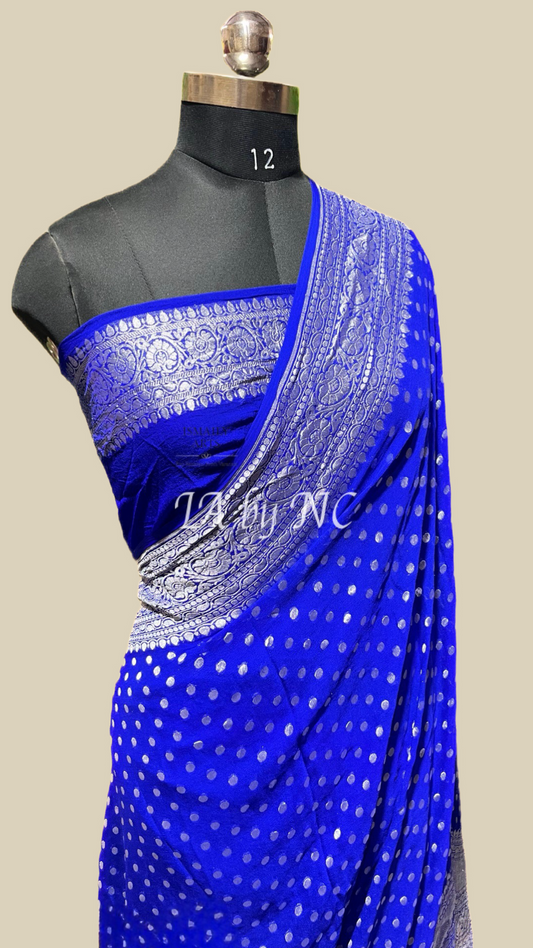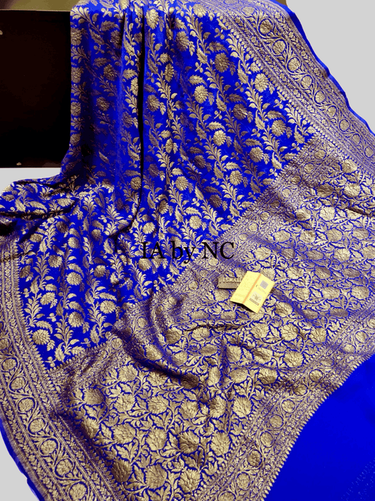 Prussian Banarasi Pure Khaddi Georgette Saree