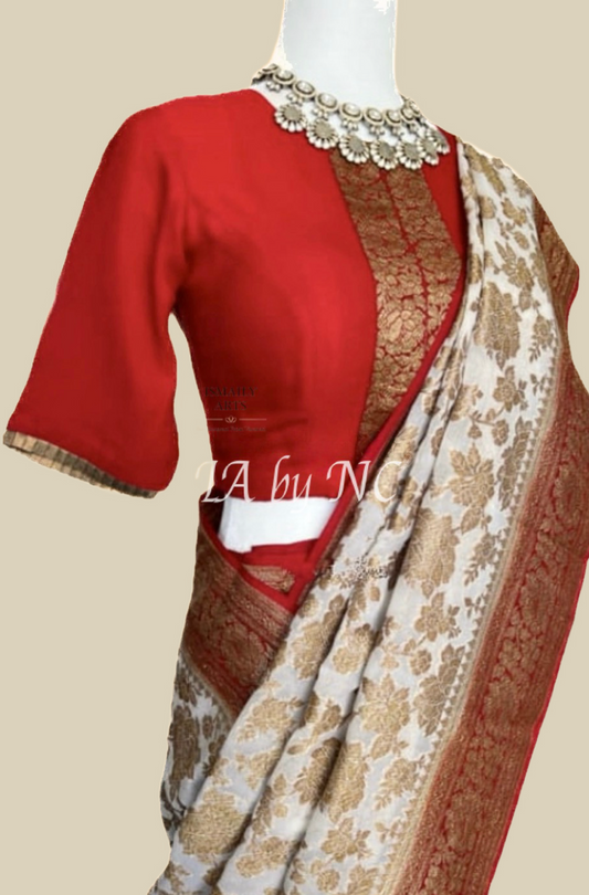 Offwhite Banarasi Pure Khaddi Georgette Saree