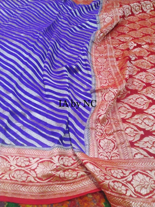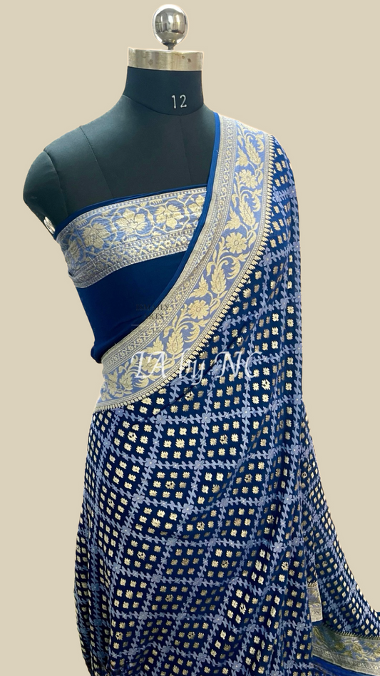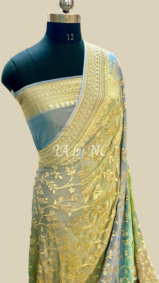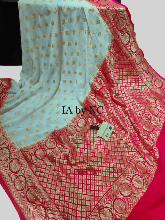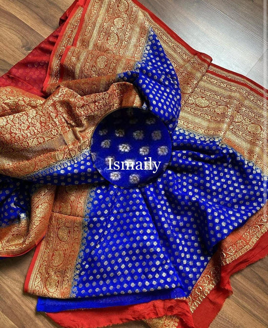Prussian Banarasi Pure Khaddi Georgette Saree