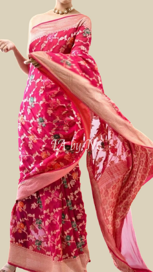 Raspberry Banarasi Pure Khaddi Georgette Saree