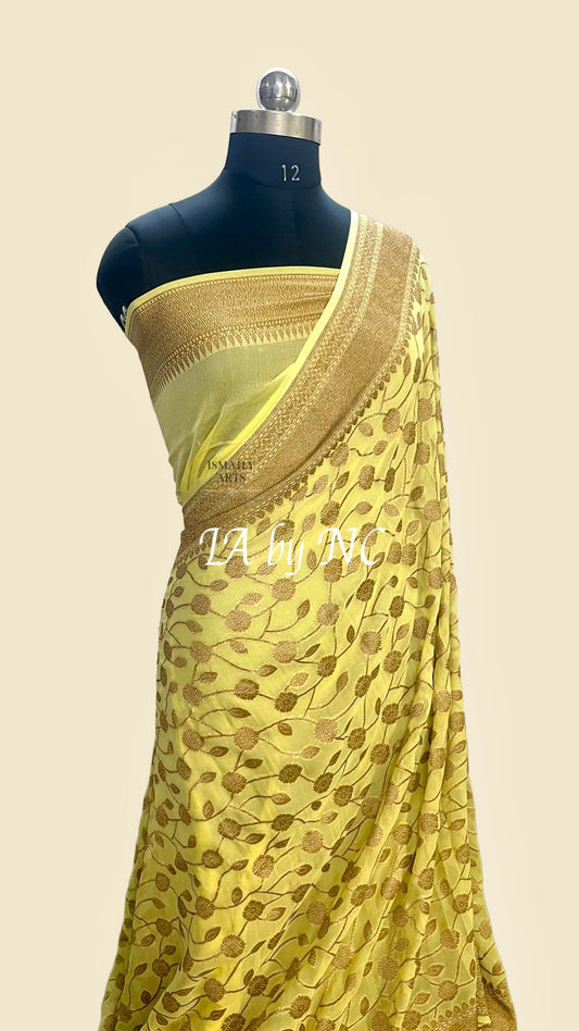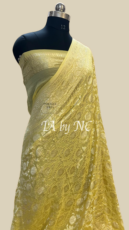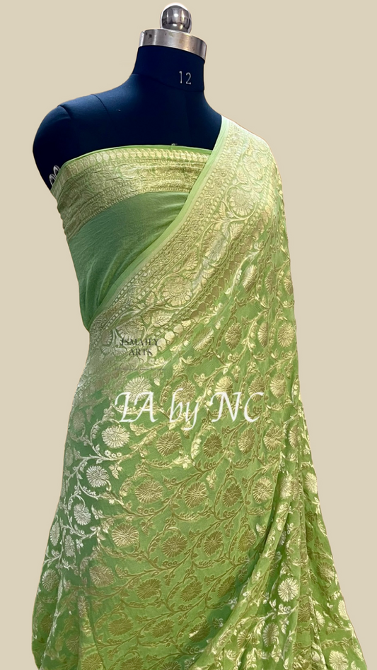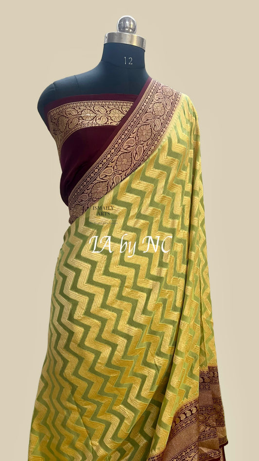 Lime Peel Banarasi Pure Khaddi Georgette Saree