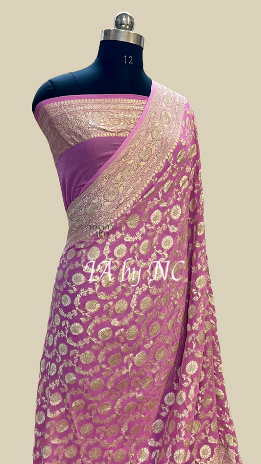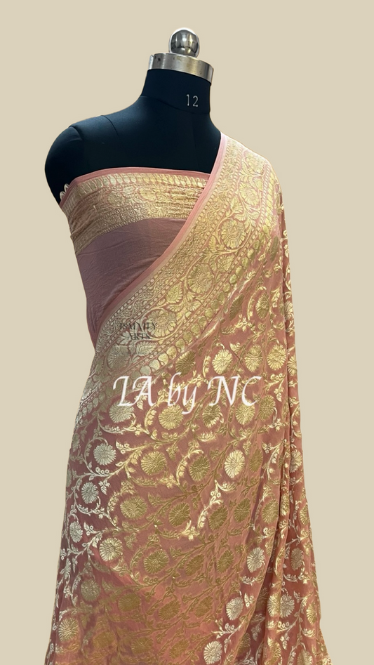 Pink Banarasi Pure Khaddi Georgette Sarees