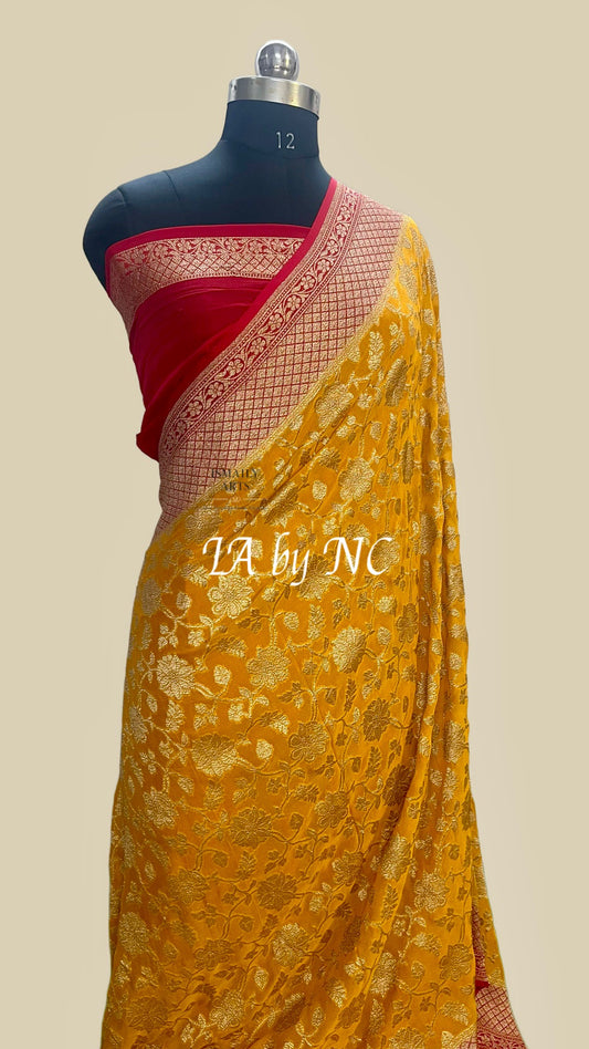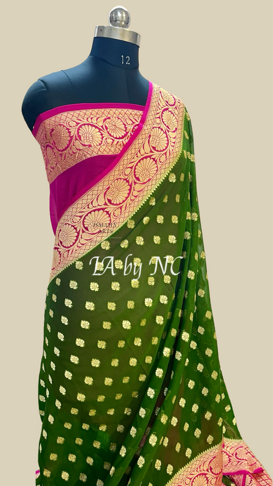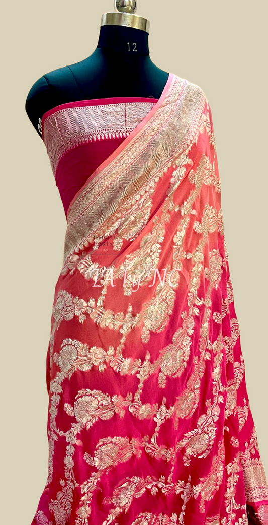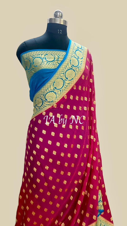 Flamingo Banarasi Pure Khaddi Georgette Saree
