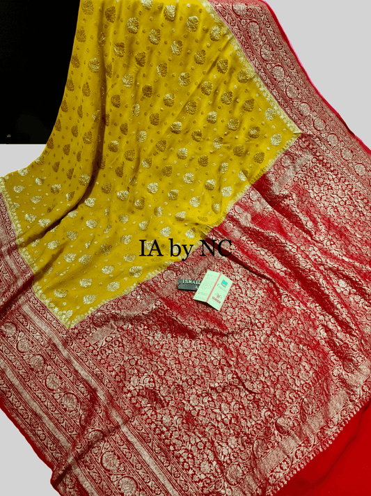 GoldenRod Banarasi Pure Khaddi Georgette Saree